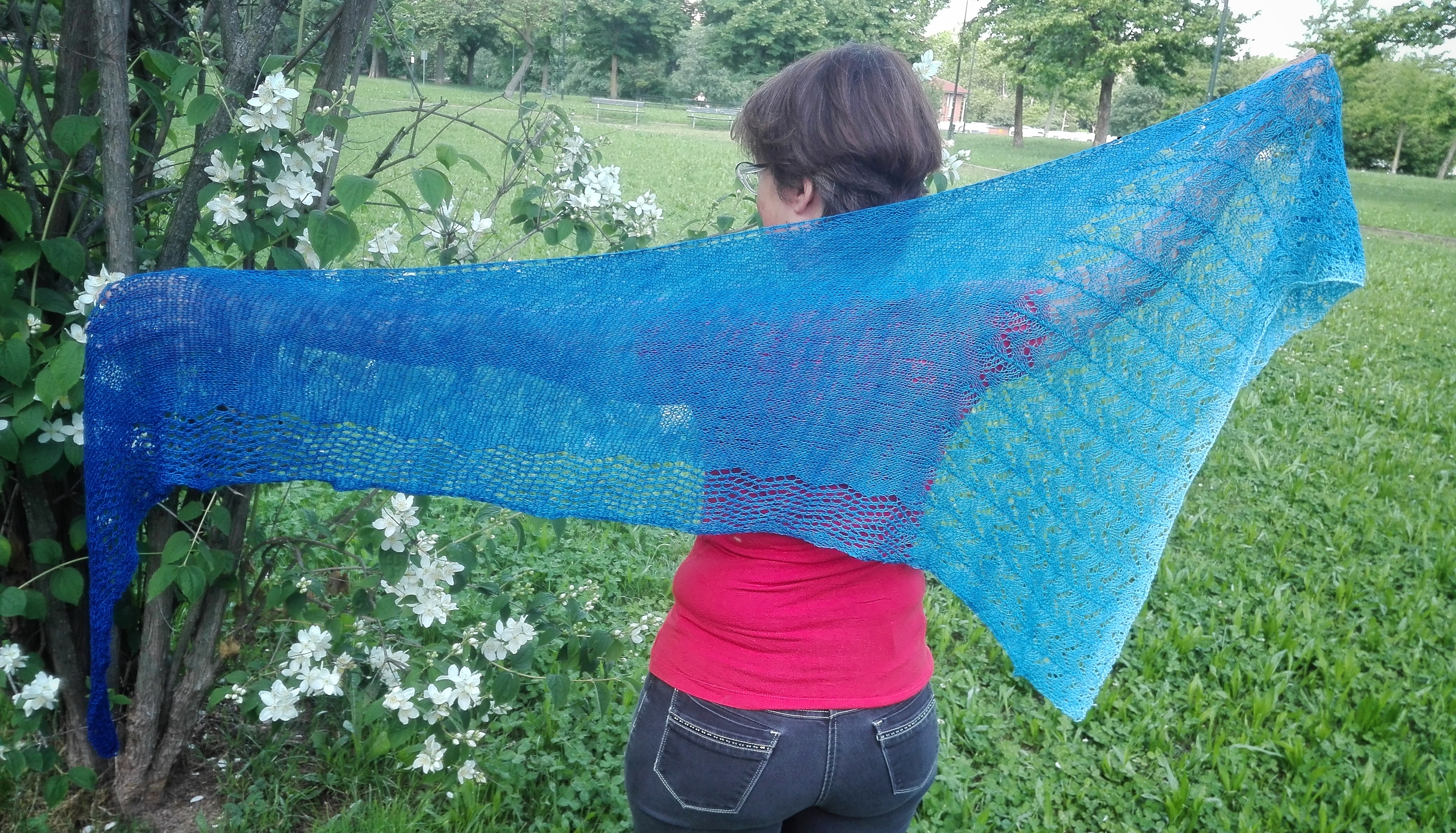 Hachi Shawl is dedicated to her and is a pattern designed for gradient yarns, the lace patterns exalt the nuances of the yarn.