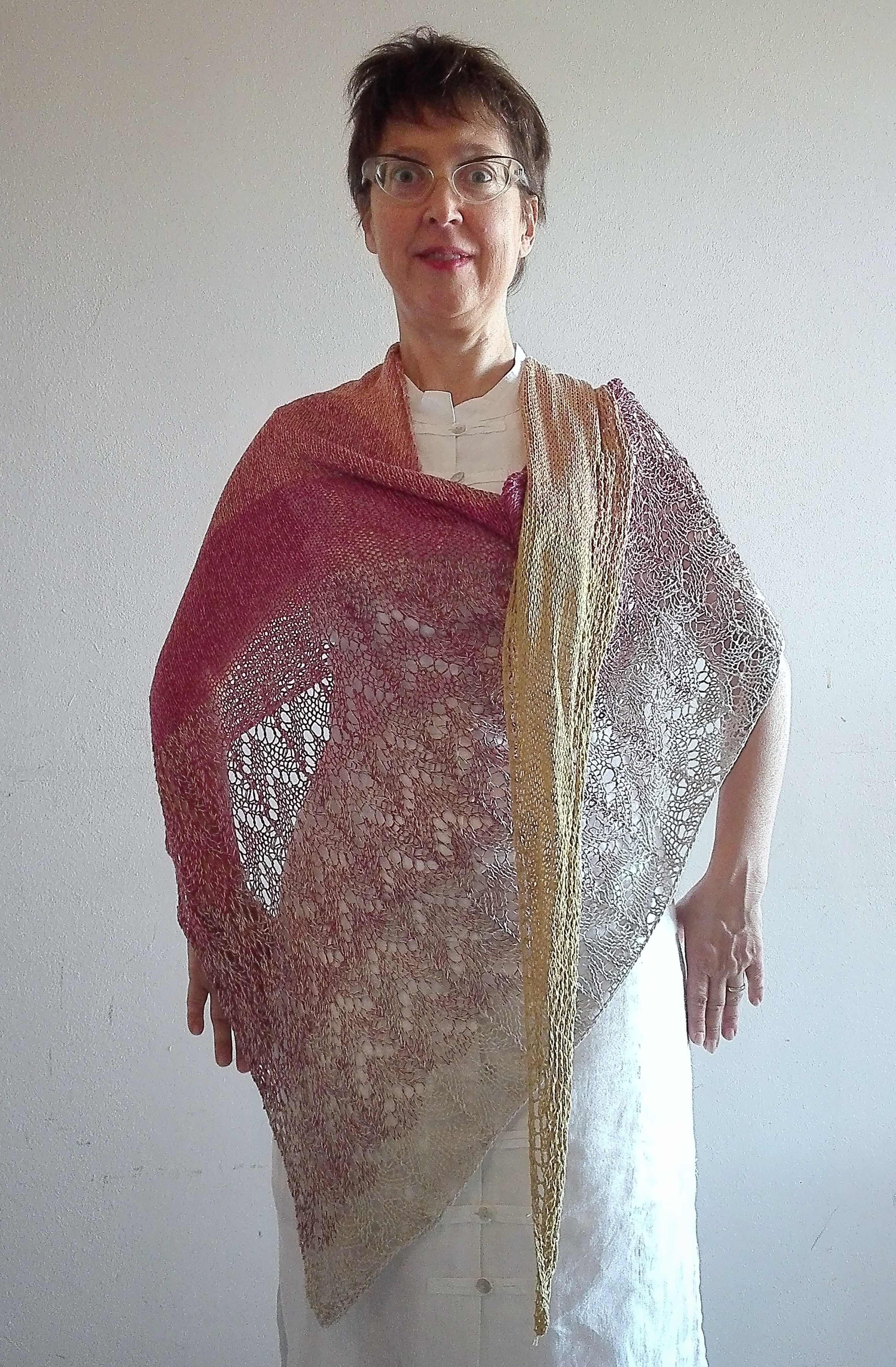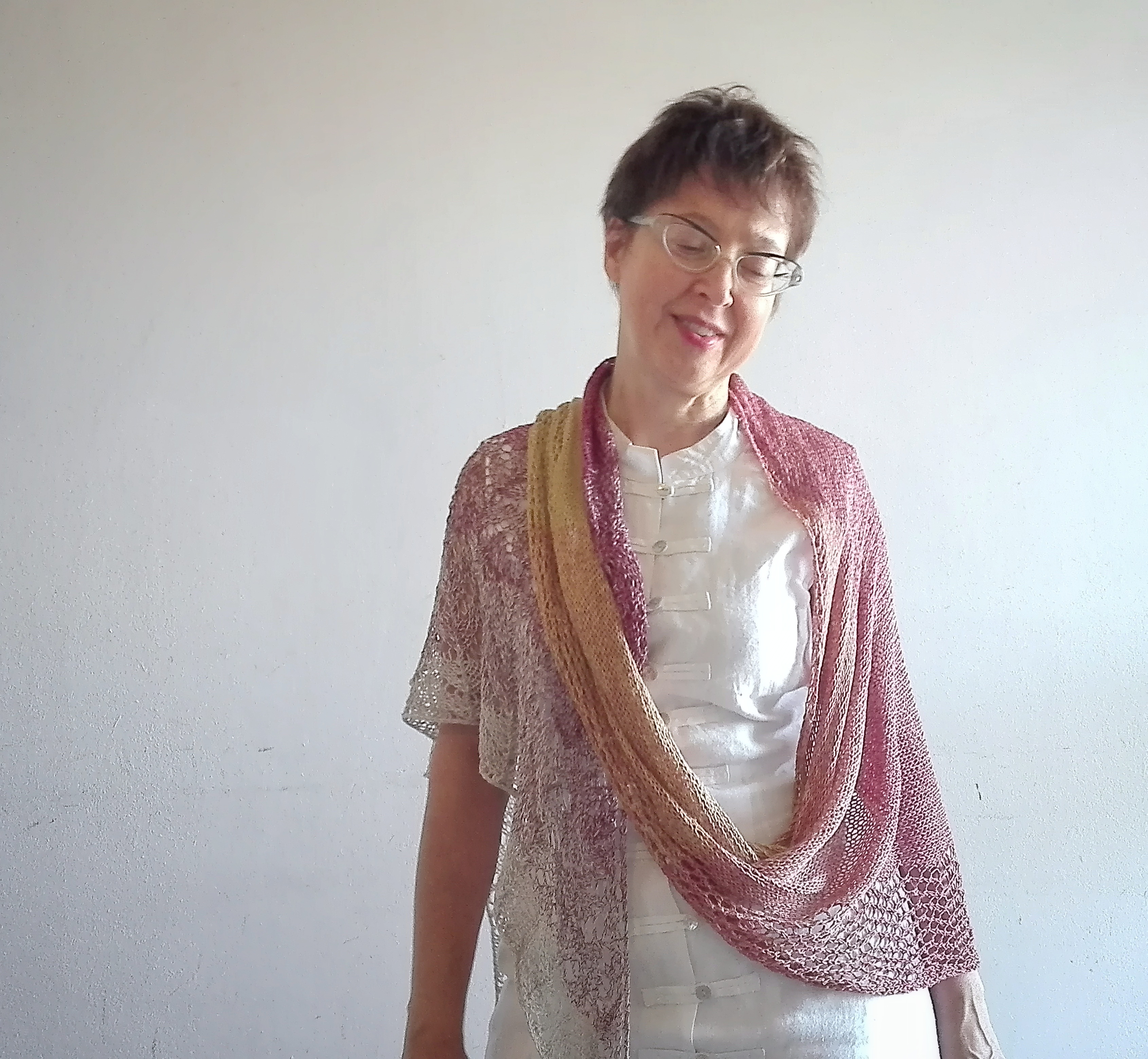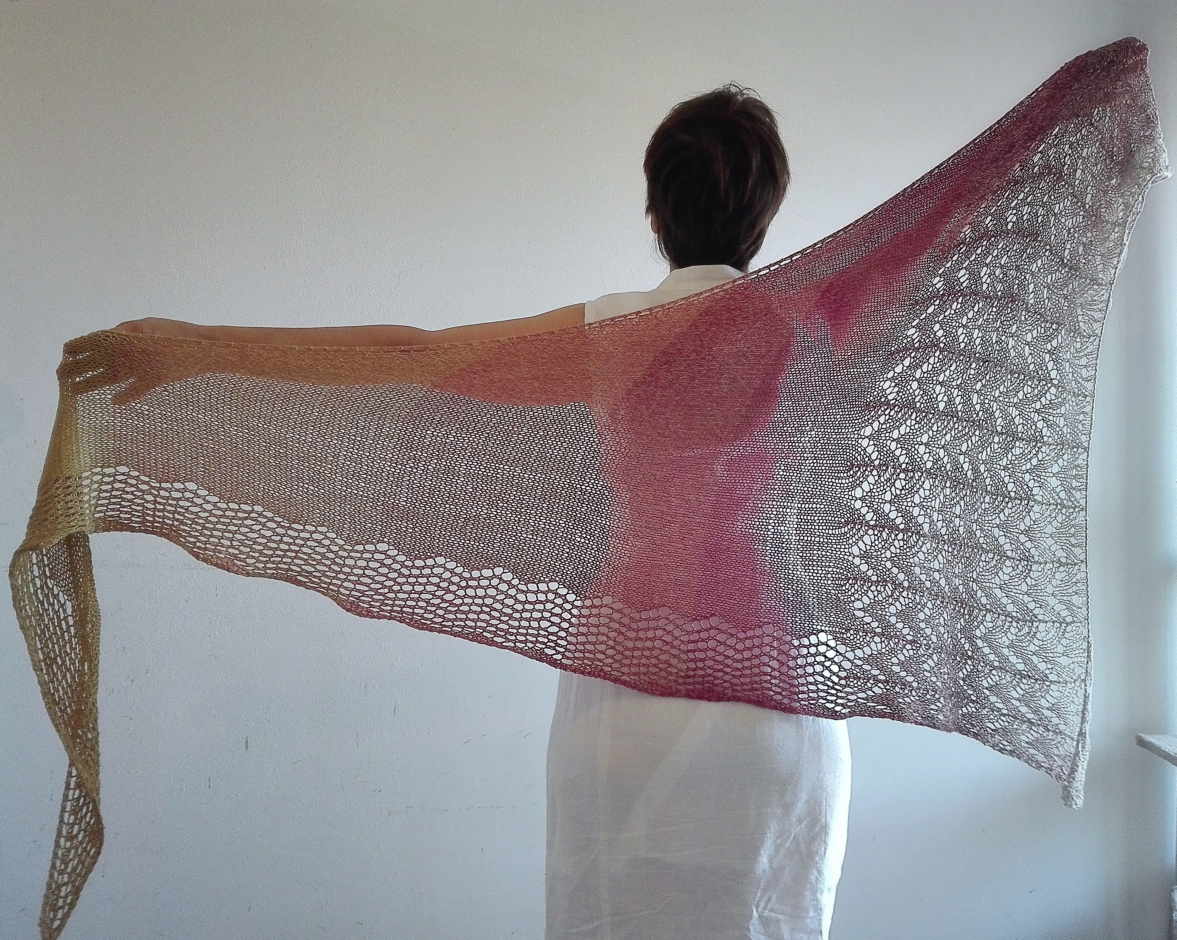 If you don’t feel like taking the time to knit it, I suggest you already made it in a special yarn made of silk, cotton and viscose, for the experts this is Silk Degradè by Katia.