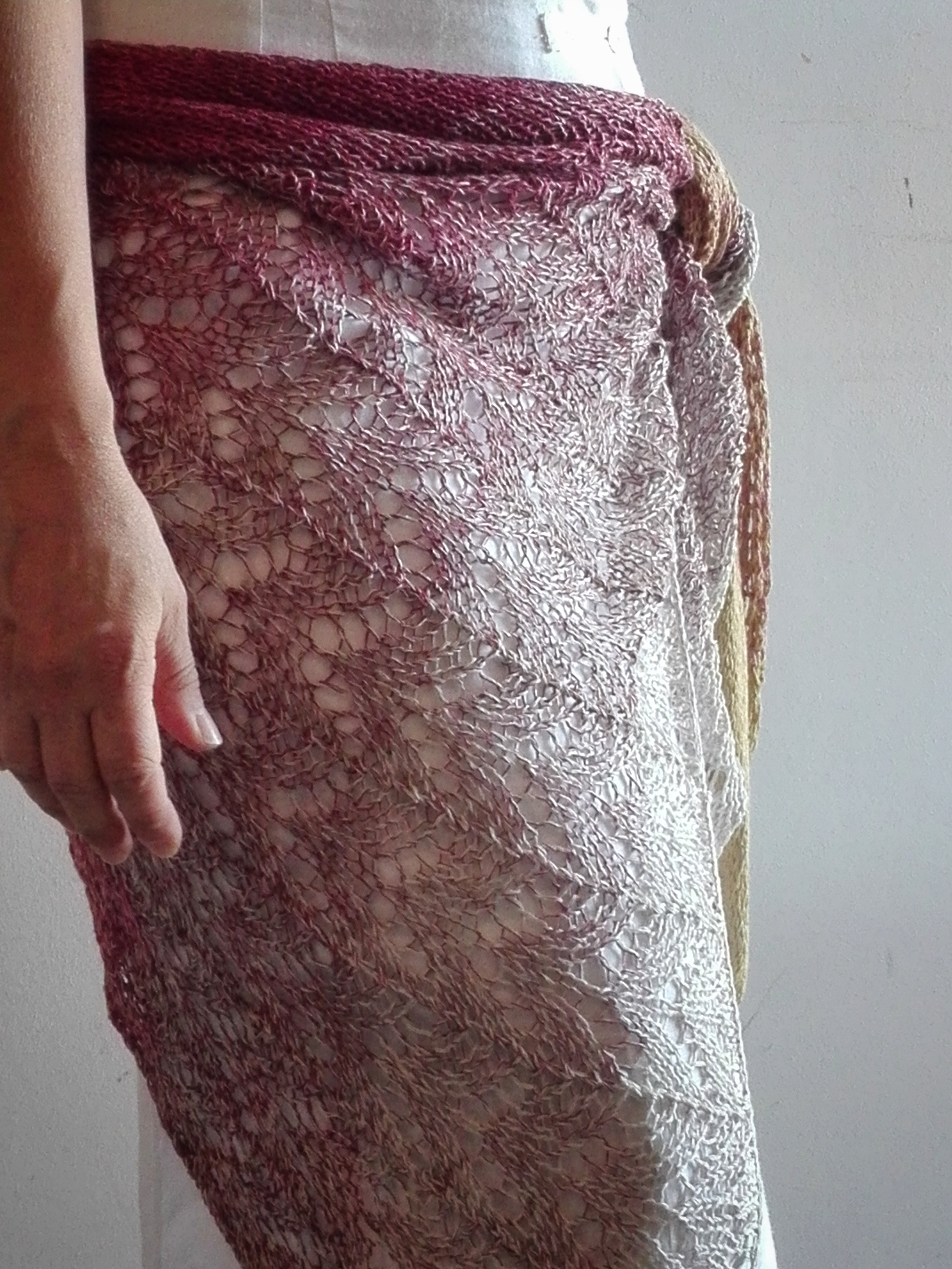 The glossy effect and the degradé color I see it perfect: like a shawl, scarf or pareo!