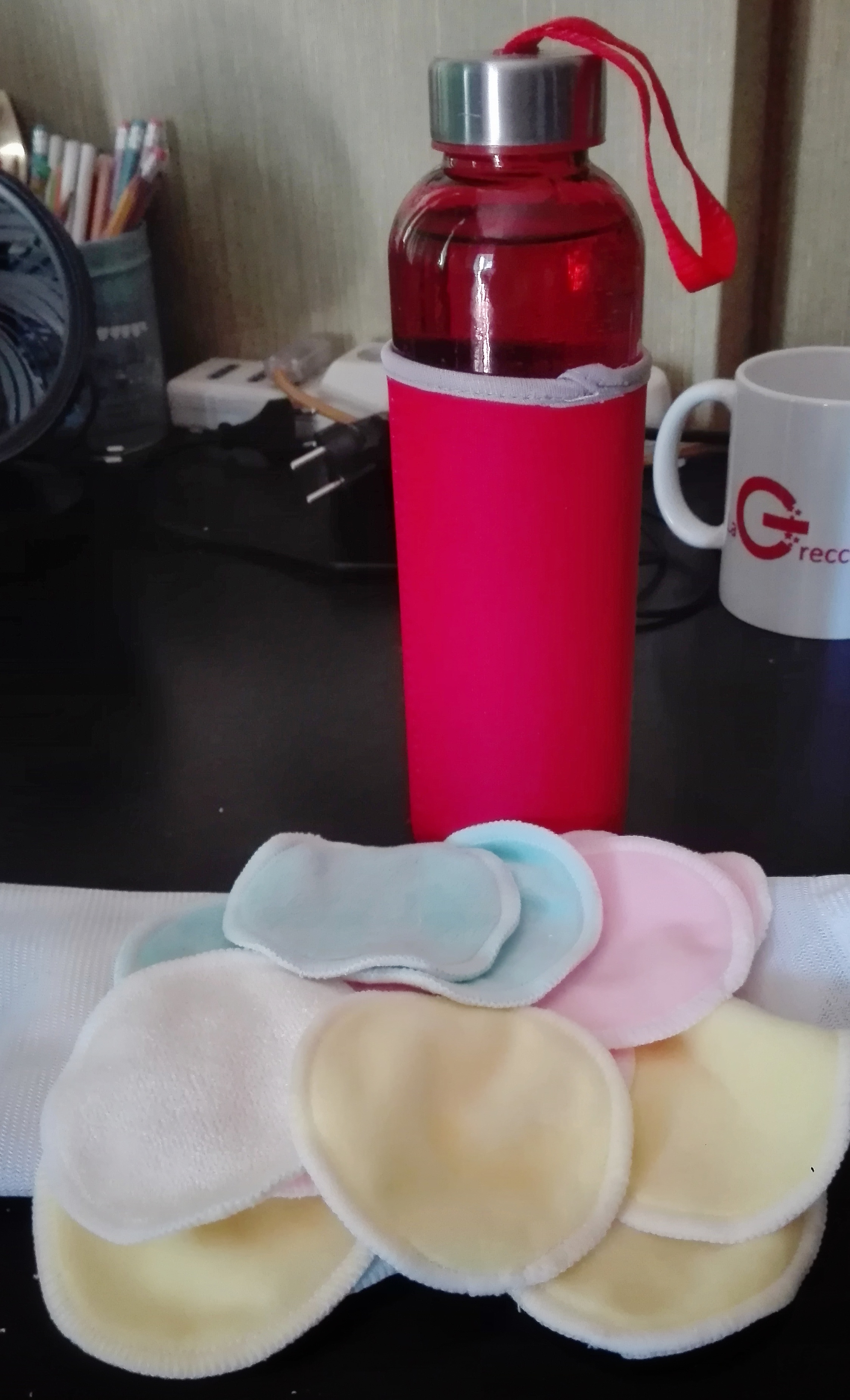 Nel mio piccolo mi sono procurata una borraccia in vetro e dei dischetti per togliere il trucco dal viso in bambù e cotone.