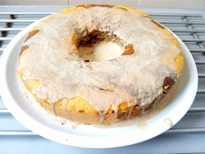 La Ciambella al caffè con Farina di Farro bianca ha la glassa di zucchero che la ricopre e che la rende golosa.