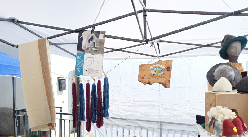Ed eccoci arrivati all’attuale pecora fiemmese dalla lana sottile e pregiata ancora allevata da Nicoletta Delladio di Lana Tingola Fiemmese che ha portato a Valgrisenche le sue belle matasse colorate di cui ho approfittato!